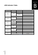 Appendix B LED Indicator Table AppendixB: LED Indicator STATUS Color Status Description Green Static Volume Normal Static Available volume space < 1GB or 1% Orange Blinking Off Front LAN Green DISK 1~2 Orange Static Network connected Blinking Network active No network Static Disk ready Blinking Accessing disk Static Disk error Off Power Blue HDD hibernation / No internal disk Static Powered on Blinking Booting up or shutting down Off Rear LAN (on upper side of jack) Or