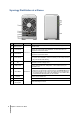 Synology DiskStation at a Glance 4 No. Item Location Description 1) Status Indicator 2) LAN Indicator 3) Disk Indicator 4) Power Button 5) Fan Disposes of excess heat and cools the system. If the fan malfunctions, the DiskStation will emit a beeping sound. 6) USB 2.0 Port Connect external hard drives, USB printers, or other USB devices to your DiskStation here. 7) Reset Button 1.