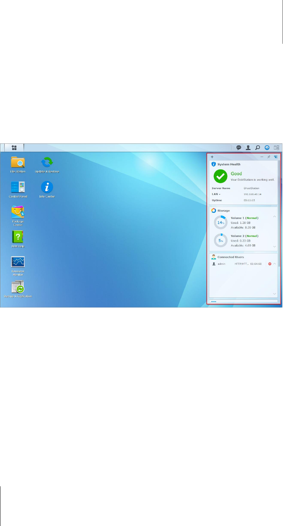 Widgets zeigen verschiedene Arten von Systeminformationen in Bezug auf den Synology NAS an.