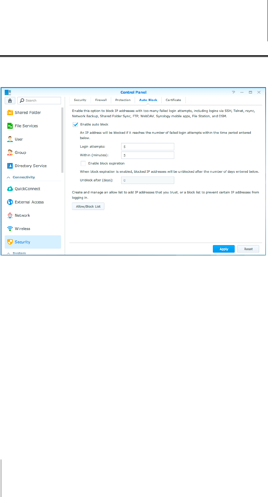 Sie zu Systemsteuerung > Sicherheit > Automatische Blockierung, um die Blockierungsliste und die
