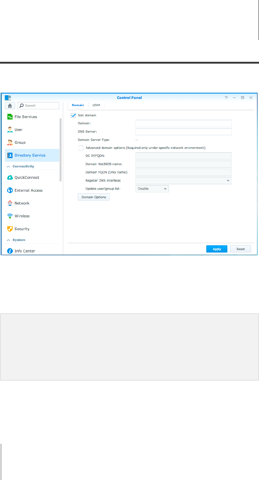 Windows-Domain oder LDAP-Client beizutreten. Wenn der Synology NAS bei einem Verzeichnisdienst registriert