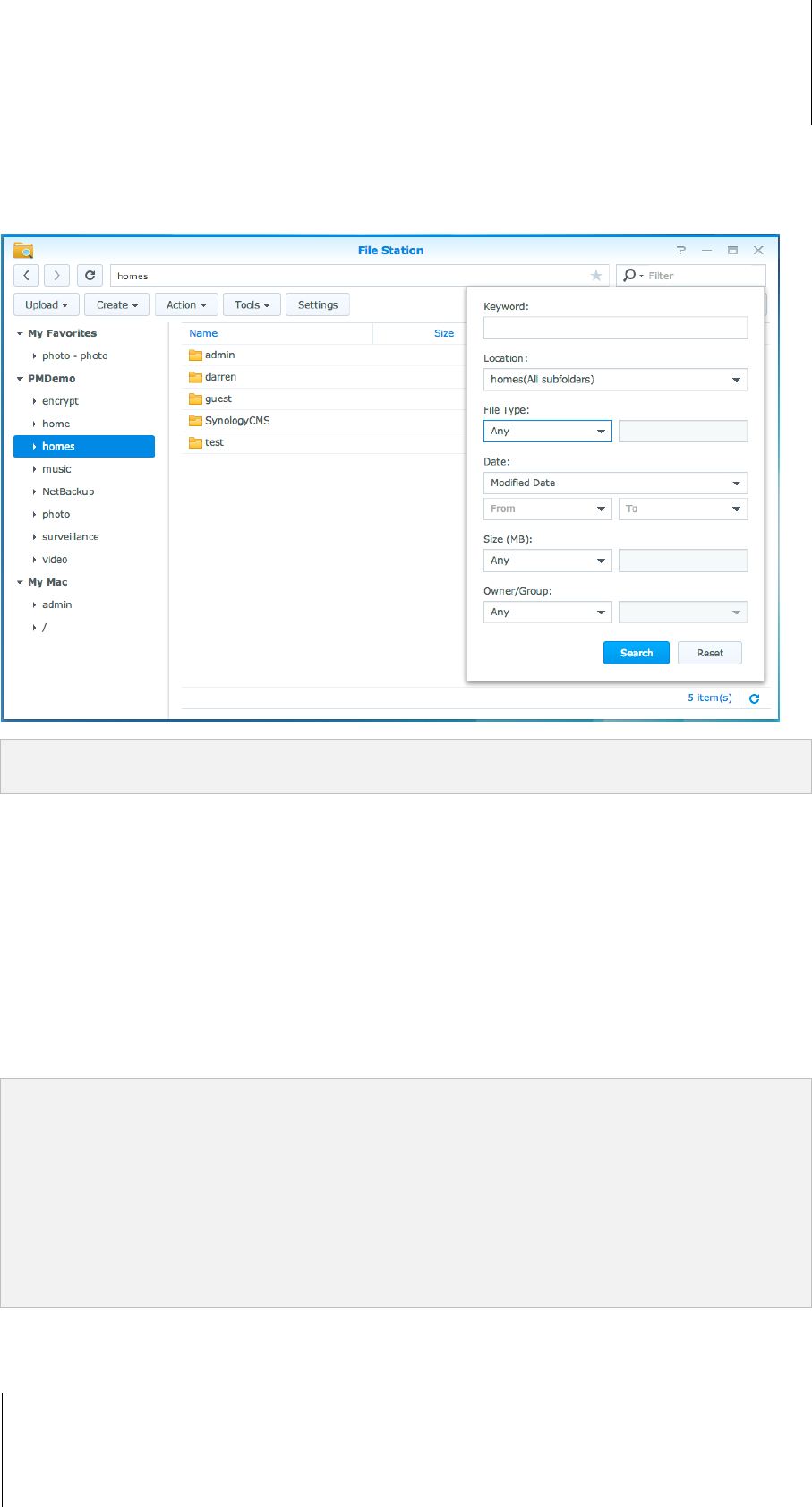 Sie können Schlüsselwörter in das Feld Filter oben rechts in File Station eingeben, um Dateien oder Ordner im