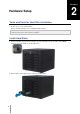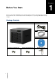 Chapter Chapter 1: 1 Before You Start Before you start setting up DiskStation, please check the package contents to verify that you have received the items below. Please also read the safety instructions carefully before use to prevent your DiskStation from any damages. Package Contents Main Unit x 1 AC power cord x 1 2M RJ-45 LAN cable x 2 Installation disc x 1 Screws for 3.5" hard drives x 52 3 Screws for 2.