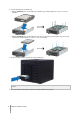 3 Load the hard disk in the hard drive tray. For 3.5” Hard Disk: Place the hard disk in the hard drive tray, and then tighten the screws to secure the hard disk. For 2.5” Hard Disk: Place the hard disk in the blue area (shown below) of the hard drive tray, turn the tray upside down, and then tighten the screws to secure the hard disk. 4 Insert the loaded hard drive tray into the empty hard disk bay. Important: Make sure the tray is pushed in all the way.