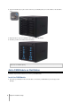 6 Turn the hard drive tray key 90˚ counter clock-wise (to the Lock position) to lock the handles of the hard drive trays. 7 Repeat the above steps to install all the other disks on your DiskStation. 8 The disks’ positions are numbered as shown below. Note: If you want to set up a RAID set, it is recommended that all installed hard disks are of the same size to make the best use of hard disk capacity.