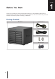 Chapter 1 Before You Start Thank you for purchasing this Synology product! Before setting up your new DiskStation, please check the package contents to verify that you have received the items below. Also, make sure to read the safety instructions carefully to avoid harming yourself or damaging your DiskStation. Package Contents Main unit x 1 AC power cord x 1 RJ-45 LAN cable x 2 Screws for 2.