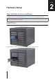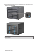 Chapter Hardware Setup Tools and Parts for Drive Installation • A screwdriver (only for 2.5” drives) • At least one 3.5” or 2.5” SATA drive (please visit www.synology.com for compatible drive models.) Warning: If you install a drive that contains data, the system will format the drive and erase all existing data. Please back up any important data before installation. Install Drives 1 Press the right part of the drive tray to pop out the handle.