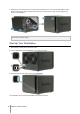 7 Slightly tilt the cover and align the two rubber packs at the bottom of the cover with the edges adjacent to the left side of the first tray and the right side of the fourth tray, and then push the upper cover to lodge the top packs into the DiskStation. Note: If you want to set up a RAID set, it is recommended that all installed hard disks are of the same size to make the best use of hard disk capacity. Start Up Your DiskStation 1 Connect the AC adapter to the power port of DiskStation.
