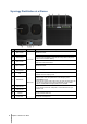 Synology DiskStation at a Glance No. Item Location 1) Disk Indicator 2) Power Button 1. Press to power on the DiskStation. 2. To power off the DiskStation, press and hold until you hear a beep sound and the Power LED starts blinking. Front Panel 3) LAN Indicator Displays the status of the network connection. For more information, see "Appendix B: LED Indicator Table". 4) Status Indicator Displays the status of the system. For more information, see "Appendix B: LED Indicator Table".