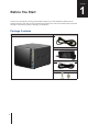 Chapter 1 Before You Start Thank you for purchasing this Synology product! Before setting up your new DiskStation, please check the package contents to verify that you have received the items below. Also, make sure to read the safety instructions carefully to avoid harming yourself or damaging your DiskStation. Package Contents Main unit x 1 AC power cord x 1 AC power adapter x 1 RJ-45 LAN cable x 2 Screws for 2.