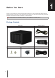 1 Chapter Before You Start Thank you for purchasing this Synology product! Before setting up your new Synology NAS, please check the package contents to verify that you have received the items below. Also, make sure to read the safety instructions carefully to avoid harming yourself or damaging your Synology NAS. Note: All images below are for illustrative purposes only, and may differ from the actual product. Package Contents Main unit x 1 AC power cord x 1 AC power adapter x 1 Screws for 2.