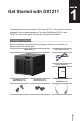 LED RAID/ Status Flashing Green Activity (On Tray) Flashing Green Hard Disk Status (On Tray) 8 Behavior Solid Green Off Solid Green Solid Orange Off Chapter 1: Get Started with DX1211 Description Volume is created Volume is degraded Volume is crashed or not created Disk is being accessed Disk is ready and idle Read/write or other errors are encountered No internal disk is found