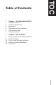 TOC Table of Contents 1 Chapter 1: Get Started with DX213 1 Package Contents 2 Hardware Specifications 3 Appearance 4 Default/Manual Switch Behavior 4 LED Indication Table 5 Safety Instructions 7 7 9 10 11 12 Chapter 2: Set Up DX213 Tools and Parts for Hard Disk Installation Install Hard Disks Connect with Synology DiskStation Work with Synology DiskStation Learn More i
