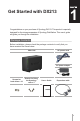 1 Get Started with DX213 Congratulations on your purchase of Synology DX213. This product is specially designed for the storage expansion of Synology DiskStation. This user’s guide will guide you through the installation. Package Contents Before installation, please check the package contents to verify that you have received the items below.