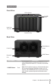 1 1 2 3 4 4 6 7 7 10 11 12 13 TOC Table of Contents Chapter 1: Get Started with DX513 Package Contents Hardware Specifications Appearance Default/Manual Switch Behavior LED Indication Table Safety Instructions Chapter 2: Set Up DX513 Tools and Parts for Hard Disk Installation Install Hard Disks Connect with Synology DiskStation Work with Synology DiskStation Learn More i