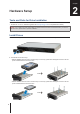Chapter Hardware Setup Tools and Parts for Drive Installation • A screwdriver • At least one 3.5” or 2.5” SATA drive (please visit www.synology.com for compatible drive models.) Warning: If you install a drive that contains data, the system will format the drive and erase all data. If you need the data in the future, please back it up before installation. Install Drives 1 Pull the drive tray handle in the direction as indicated below to remove the drive tray. 2 Load drives into the drive trays. • For 3.