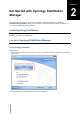 Chapter Chapter 2: Get Started with Synology DiskStation Manager This chapter explains how to log in to Synology DiskStation's web-based management UI, Synology DiskStation Manager (DSM), customize your own desktop, manage its taskbar and widgets, and use the Main Menu to access DSM settings and applications. Install Synology DiskStation For more information about setting up Synology DiskStation and installing DSM, see the Quick Installation Guide that came with your installation disc.