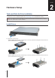 Chapter Hardware Setup Tools and Parts for Drive Installation • A screwdriver • At least one 3.5” or 2.5” SATA drive (please visit www.synology.com for compatible drive models.) Warning: If you install a drive that contains data, the system will format the drive and erase all data. If you need the data in the future, please back it up before installation. Install Drives 1 Pull the drive tray handle in the direction as indicated below to remove the drive tray. 2 Load drives in the drive trays. • For 3.