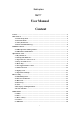 Mobile phone M611T User Manual Content Content............................................................................................................................................. 1 1 Introduction.................................................................................................................................. 2 1.1 Acknowledgement ............................................................................................................. 2 1.2 Announcements .......................