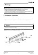 1 Warnings Warning • Beware of sharp edges during mounting and maintenance. Use protective gloves. • Consider the unit weight when mounting! The unit weights about 47 kg. • This product must only be operated by a person which has suitable knowledge or education within this field or carried out with the supervision of a suitably qualified person. 2 Installation procedure 1 Prepare the surface where the unit should be mounted. Make sure that the wall is flat and supports the weight of the unit.
