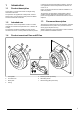 Product type Screw X (mm) K 100 M 3 112.5 K 125 M 3 112.5 K 100/125 XL 1 124.5 K 150/160 M 2 148.5 K 150/160 XL 1+3 174.5 K 200/250 M 1+2 183.5 K 200/250 L 1+2 183.5 K 315 M/L 1+2 222 K 100 EC 1 124.5 K 125 EC 1 124.5 K 150 EC 2 148.5 K 160 EC 2 148.5 K 200 EC 1+2 183.5 K 250 EC 1+2 183.5 K 315 EC 1+2 222 4.3 1 2 To install the prio fans Attach the pendulum bars or wires to the mounting brackets on the product casing. 4.
