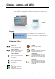 Display, buttons and LEDs This section is applicable to Corrigo units with display and buttons but also to the hand terminal E3-DSP. For third generation controllers, it is also possible to connect an external display to units that are equipped with a display and buttons. E3-DSP Display Vent sys controller 2016-11-20 13:30 System: Normal run Sp: 18.0 Act: 18.2°C The display has 4 rows of 20 characters. It has background illumination.