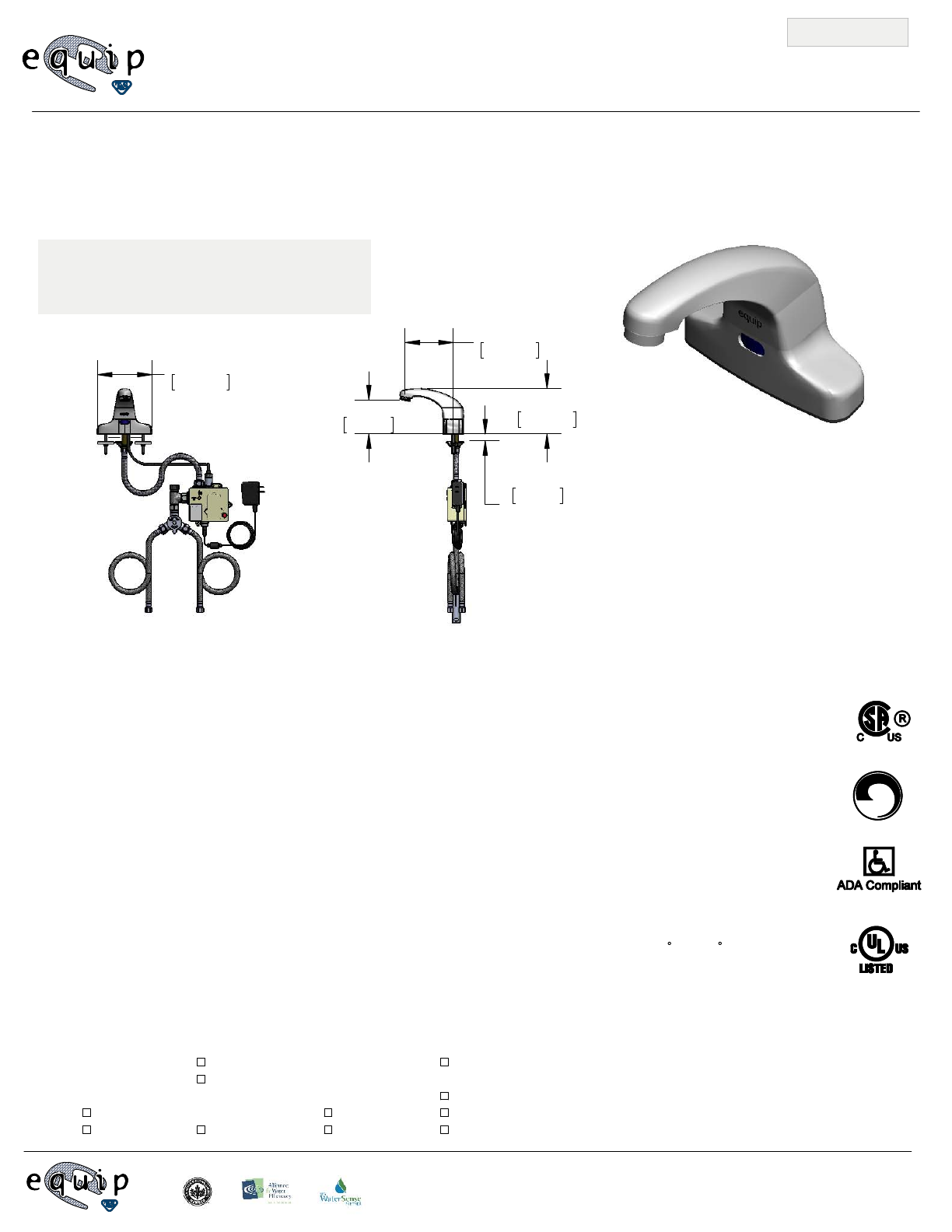 3/8" compression connections. Certified to ASME A112.18.1/CSA B125.1, NSF 61-Section 9, NSF 372 and UL 1951. Meets ADA ANSI/ICC