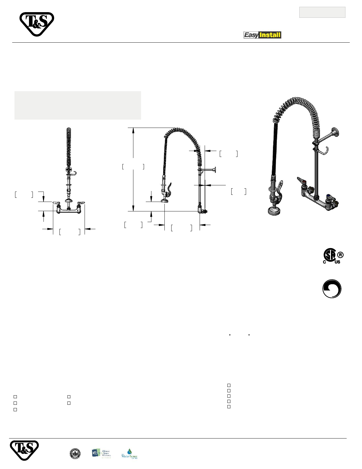 1.42 GPM spray valve, compression cartridges with spring checks, lever handles, 1/2" NPT male inlets, 6” adjustable wall bracket, spray