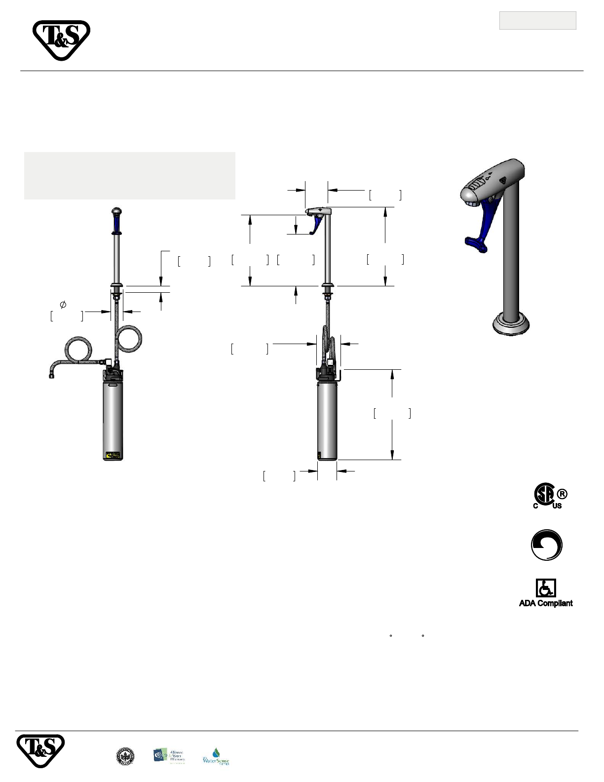 adjustable deck flange, water filtration cartridge and 1/2” NPT male inlet. Certified to ASME A112.18.1/CSA B125.1, NSF 61-Section 9 and
