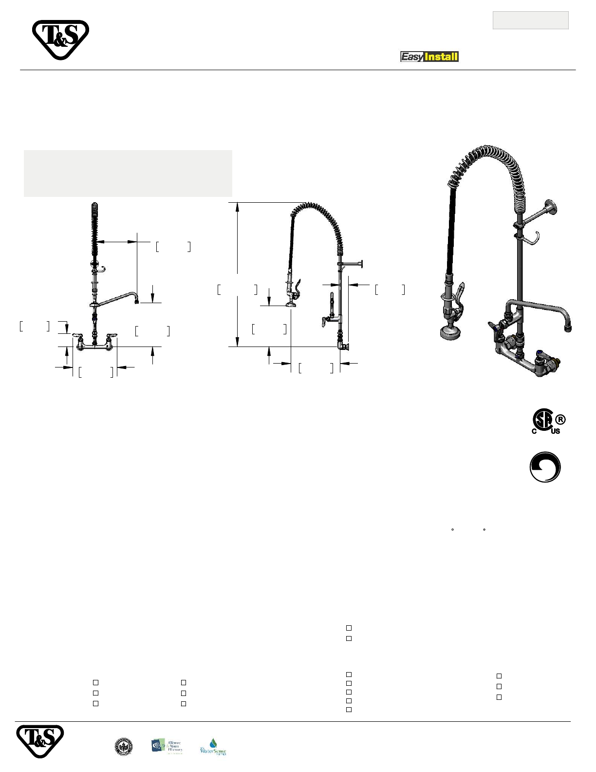 bracket, spray valve holder and overhead spring. Certified to ASME A112.18.1/CSA B125.1, NSF 61-Section 9, NSF 372 and CSA B64.8. EPAct