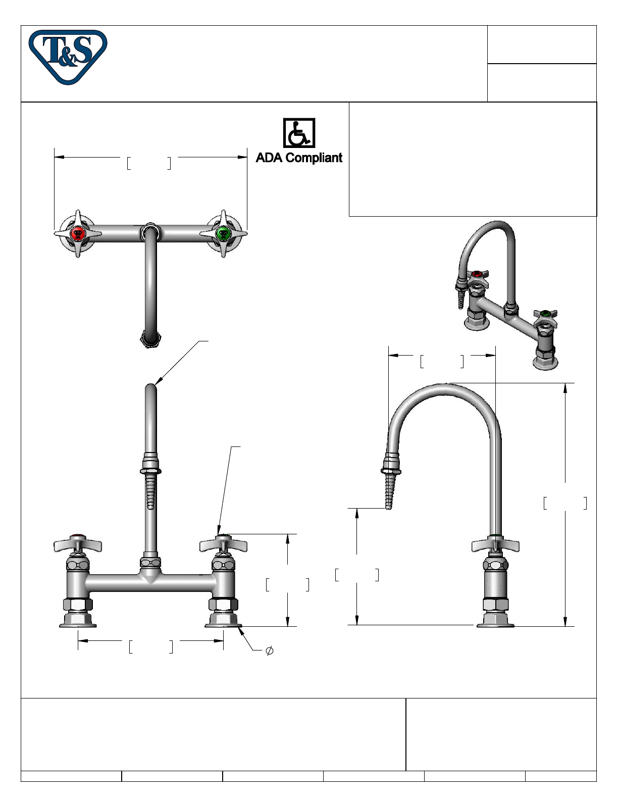 8" Deck Mount Mixing Faucet, Quarter-Turn Eterna Cartridges w/ Spring