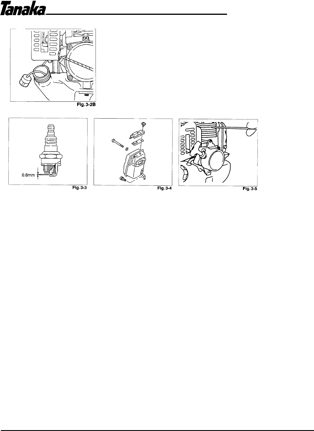 it and check the electrode gap. Readjust if necessary. The correct gap is 0.6 mm (.024”). The spark plug should be replaced