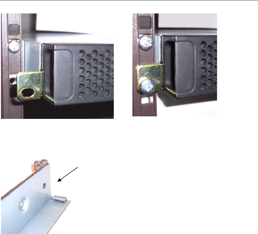 Unscrew the M5x8 screws at the back of the rack mounting kit. (See figure 3.7)