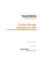 1 Introduction This document contains the specification of the TANDBERG Codian Remote Management API, by which it is possible to control several Codian products. This is accomplished via messages sent using the XML-RPC protocol. XML-RPC is a simple protocol for remote procedure calling using HTTP as the transport and XML as the encoding. It is designed to be as simple as possible, whilst allowing complex data structures to be transmitted, processed and returned.