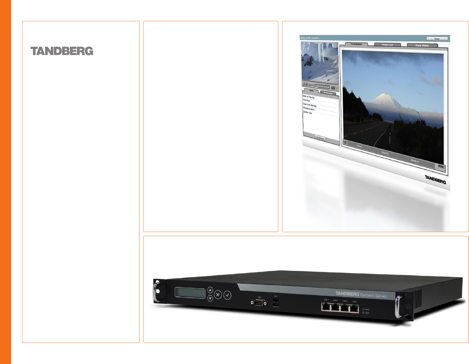 Introduction Features at a Glance TANDBERG CONTENT SERVER USER GUIDE The TANDBERG Content Server provides users with a quick and easy way to record video meetings and view them live or on demand from their computers.