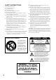 SAFETY INSTRUCTIONS 1. 2. 3. 4. 5. 6. 7. Read these instructions. Keep these instructions. Heed all warnings. Follow all instructions. Do not use this apparatus near water. Clean only with a dry cloth. Do not block any ventilation openings. Install in accordance with the manufacturer’s instructions. 8. Do not install near any heat sources such as radiators, heat registers, stoves, or other apparatus (including amplifiers) that produce heat. 9.