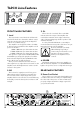 Using the 1/4" TRS INPUT 1s a “Thru” Connector Because the XLR connector and the 1/4" TRS connector are in parallel, you can use the 1/4" TRS jack as a “Thru” connector to pass the input signal on to another amplifier’s input (see Figure below). INPUT 2 INPUT CONNECTION OFF FROM MIXING CONSOLE LEFT AND RIGHT MAIN OUT ON Note: If you use an unbalanced 1/4" TS cable to daisy-chain the TRS input jack to another amplifier, you will unbalance the XLR input on the Juice amplifier.