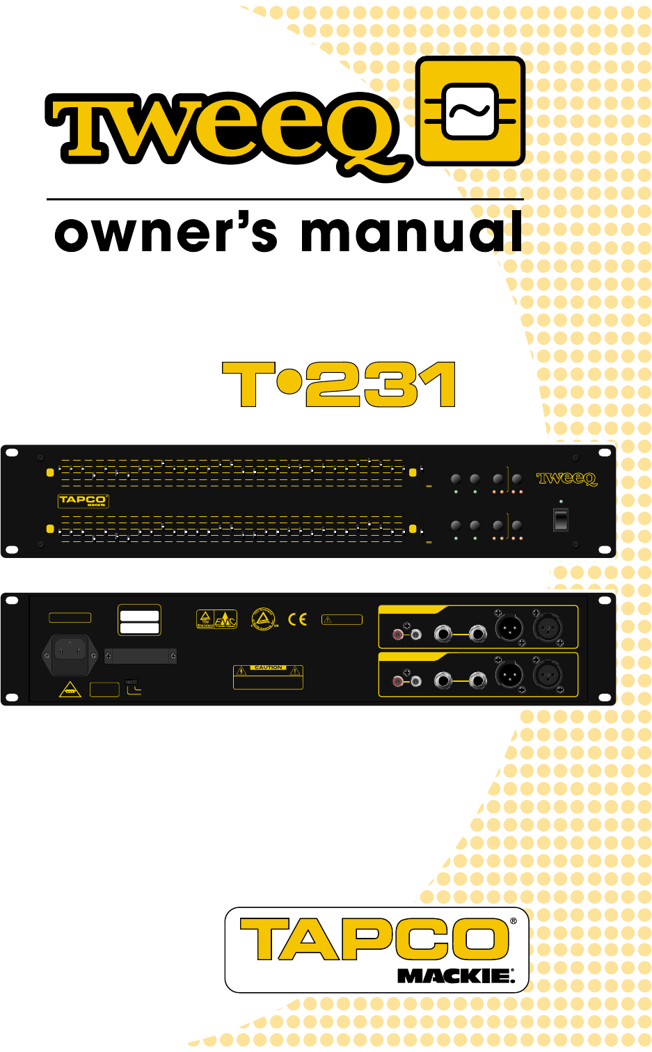 Introduction Thank you for choosing a TAPCO® Tweeq™ 31-band graphic equalizer by Mackie®. The TAPCO product line hails back to the days of TAPCO Corporation, Greg Mackie’s first company. TAPCO revolutionized the audio industry back in 1969 with the very first 6channel mixer specifically designed for keyboards and rock ‘N’ roll PA. In essence, TAPCO redefined the price performance ratio and made high-quality professional audio mixers accessible to virtually anyone.