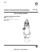 Pump Service 6. Grease piston packings and sleeve top edge. 10. Reassemble intake valve with new o-ring (315a), seat (309a) and ball (315b). Seat may be flipped over and used on other side. Clean seat thoroughly. Place intake spring (315r) on top of ball guide (317). 317r 317 315b 309a 315a 7. Carefully slide piston assembly into top of sleeve. 11. Install intake valve on cylinder. If a wrench is used, torque to 200 +/- 15 ft-lb. If a wrench is not used, be sure intake valve is tight against cylinder.