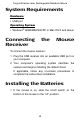 Targus Wireless Laser Rechargeable Notebook Mouse System Requirements Hardware • USB port Operating System • Windows® 98SE/ME/2000/XP or Mac OS X and above Connecting Receiver the Mouse To connect the mouse receiver: 1 Plug the USB receiver into an available USB port on your computer. 2 Your computer’s operating system identifies the receiver and begins installing the default driver. If applicable, follow any on-screen procedures to complete the native driver installation.