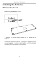 Targus Wireless 2.4 GHz keyboard Installing the Batteries Wireless Keyboard Removing the battery cover 1 Remove the battery cover located on the bottom of the keyboard. 2 Insert the supplied batteries , making sure that the positive (+) and negative (-) ends of each battery match the polarity indicators inside the battery compartment.
