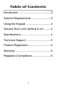 Table of Contents Introduction ..........................................3 System Requirements ..........................3 Using the Keypad .................................4 Activate Num Lock (default is on) ........4 Specifications ........................................4 Technical Support ................................5 Product Registration .............................5 Warranty ...............................................5 Regulatory Compliance ........................