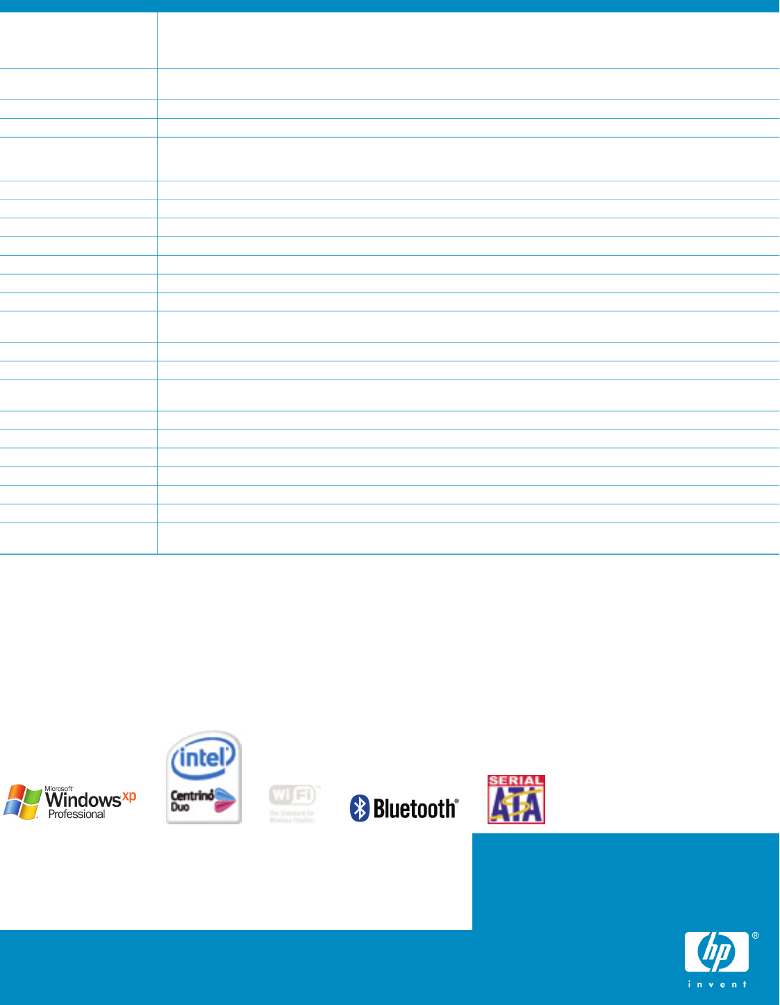 Intel® Core™ Duo Processor T2300+ / T2400+ / T2500+ (1.66 to 2 GHz, 667 MHz FSB, 2 MB L2 cache), or Intel® Core™ Solo Processor