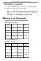 Targus wireless keypad and opitcal mouse combo Wireless Keypad 1 Press and release the setup key on the receiver again. 2 Press the setup key on the keypad. When the light emitter diode (LED) on the receiver is lit, the keypad is set up with an ID and the receiver is locked. You are now ready to use the keypad. Using the Keypad Activate Num Lock (LED illuminated) Definition of the keys: Num Lock / * Bk Sp 7 8 9 - 4 5 6 + 1 2 3 0 00 .