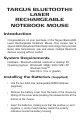 TARGUS BLUETOOTH® LASER RECHARGEABLE NOTEBOOK MOUSE Introduction Congratulations on your purchase of the Targus Bluetooth® Laser Rechargeable Notebook Mouse. This mouse has a special EDR (Enhanced Data Rate) technology that provides faster data transmission rate and allows multiple Bluetooth devices running without conflict. System Requirements Hardware - Bluetooth-enabled notebook or desktop PC Operating System - Windows® 98SE / 2000 / ME / XP Windows VistaTM Mac OS X (10.