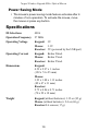 Targus Wireless Keypad & Mini Optical Mouse Power Saving Mode • The mouse’s power saving mode feature activates after 4 minutes of non-operation. To activate the mouse, move the mouse or press any button. Specifications ID Selections 4096 Operation Frequency 27 MHz Operating Voltage Keypad: 3V Mouse: 3.3V Receiver: 5V (powered by the USB port) Operating Current Keypad: Below 20mA Mouse: Below 55mA Receiver: Below 25mA Dimensions Keypad: 4.59 x 2.97 x 1. inches (122 x 74 x 25 mm) Mouse: 3.25 x 1.