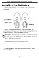 Targus Wireless Multimedia Presenter with Trackball Installing the Batteries 1 Remove the battery cover located on the bottom of the presenter. Connect Button Battery Cover Batteries 2 Insert the supplied batteries, making sure that the positive (+) and negative (-) ends ofeach battery match the polarity indicators inside the battery housing. WARNINGS: WHEN REPLACING THE BATTERIES, YOU MAY USE ALKALINE OR OTHER HEAVY-DUTY NIMH BATTERIES. NEVER COMBINE ANALKALINE WITH A NIMH BATTERY IN A DEVICE.