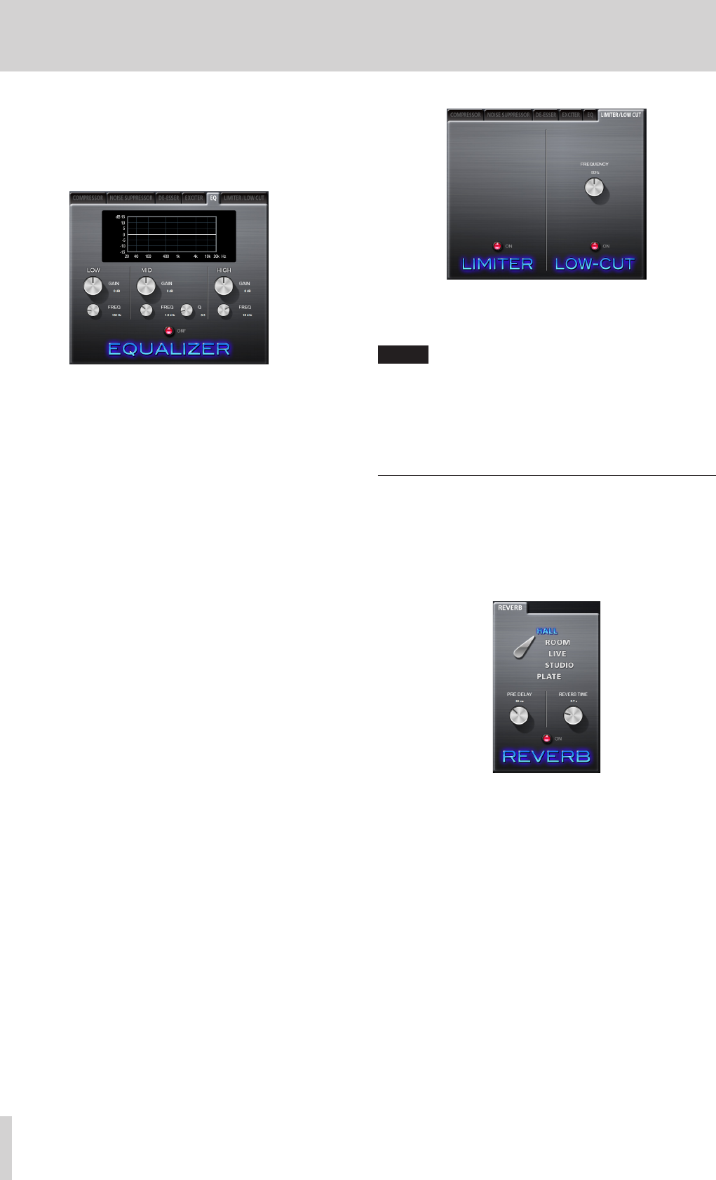 The equalizer has a high-shelf HIGH band, a low-shelf LOW band