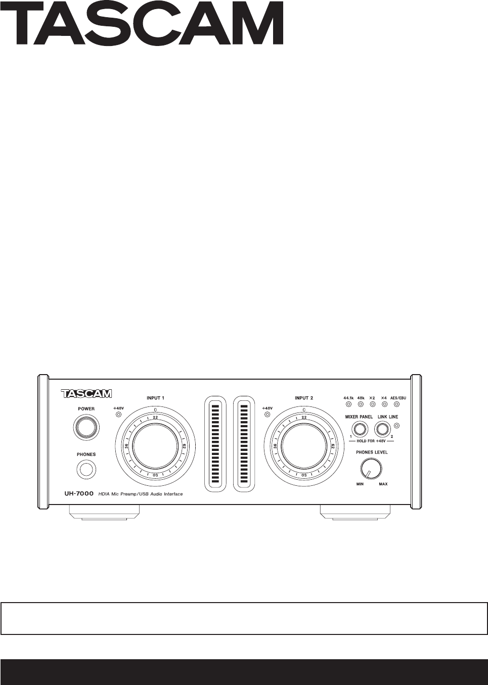 UH-7000 TEAC CORPORATION http://tascam.jp/ Phone: +81-42-356-9143 1-47 Ochiai, Tama-shi, Tokyo 206-8530, Japan TEAC AMERICA, INC. http://tascam.com/ Phone: +1-323-726-0303 7733 Telegraph Road, Montebello, California 90640 USA TEAC MEXICO, S.A. de C.V. http://teacmexico.net/ Phone: +52-55-5010-6000 Río Churubusco 364, Colonia Del Carmen, Delegación Coyoacán, CP 04100, México DF, México TEAC UK LIMITED http://tascam.