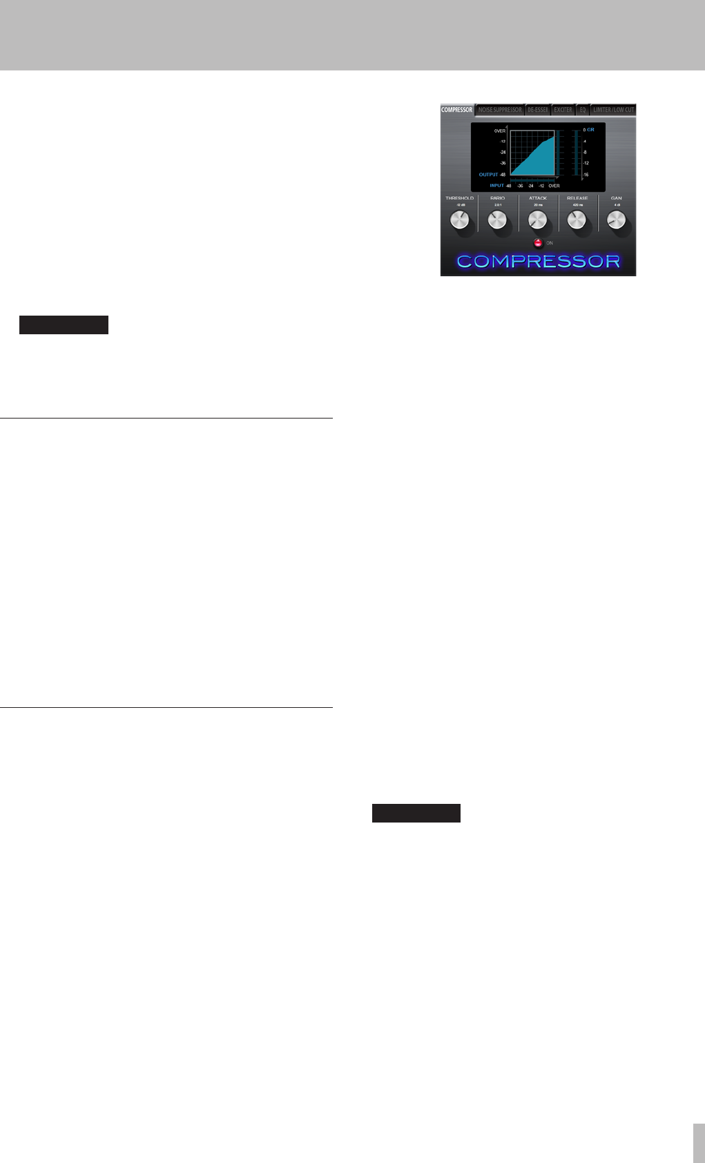 Auf der Registerkarte COMPRESSOR stellen die drei Pegelanzeigen